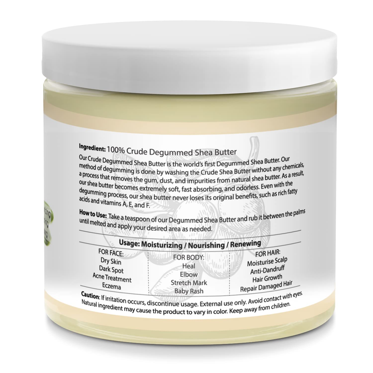 - ✅HOW IT WORKS – Degummed Shea Butter for skin absorbs quickly, penetrates deeply and coats the skin with a fine film thereby diminishing water loss and leaving the skin softened and protected